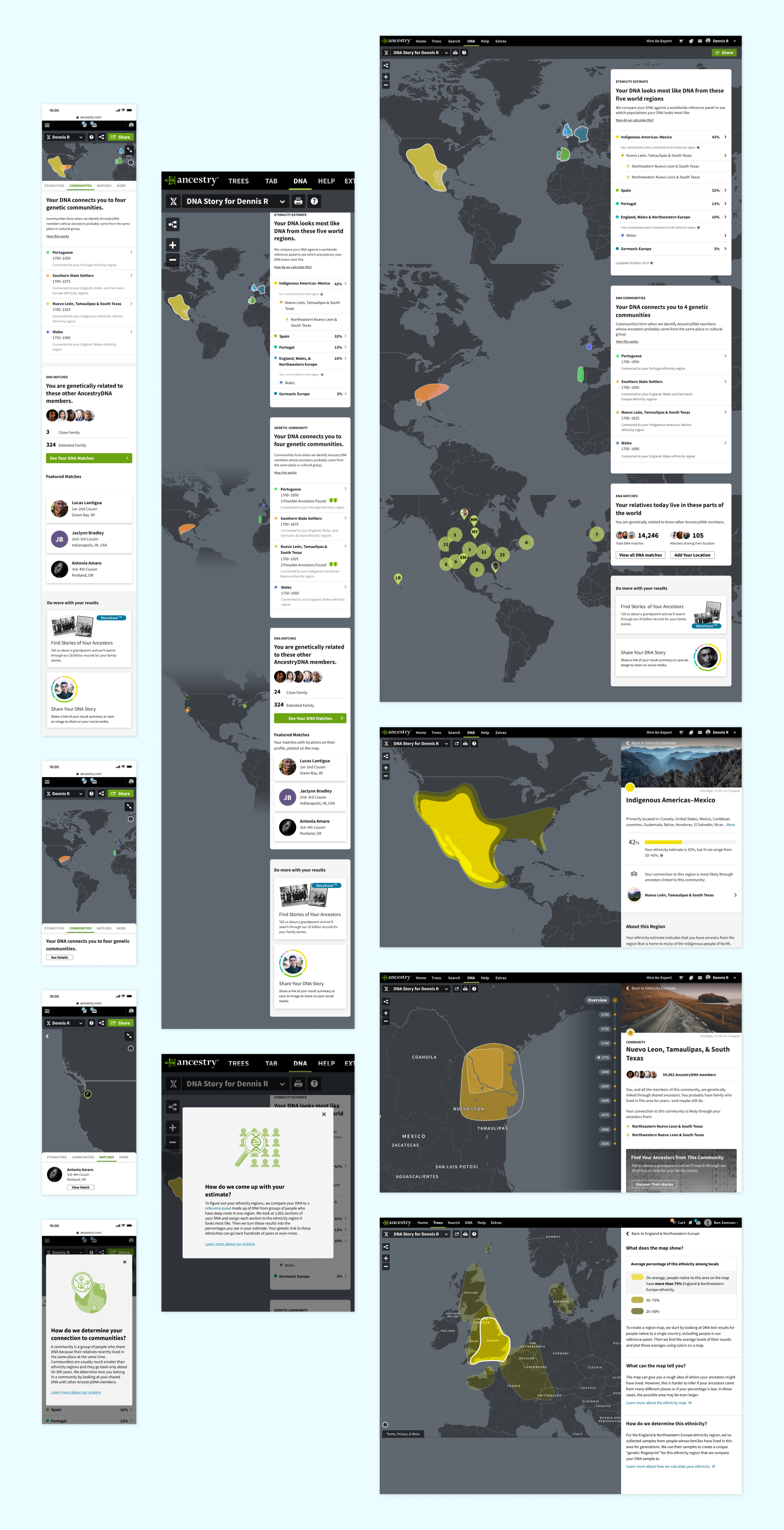 Being able to claim a small portion of the globe as your heritage is great and all, but our customers repeatedly tell us that the true connection happens on the personal level. In the redesigned experience, we take our customers through these levels of connections. Starting from the ethnicity level, zooming into their genetic communities, and finally inching closer to that individual connections through their genetic relatives.